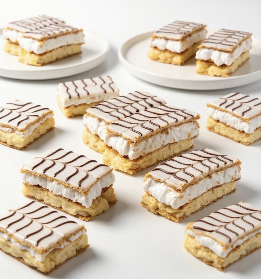 En esta versión combinamos crema pastelera de vainilla y merengue suizo, creando un contraste perfecto entre la suavidad y el crujiente del hojaldre.