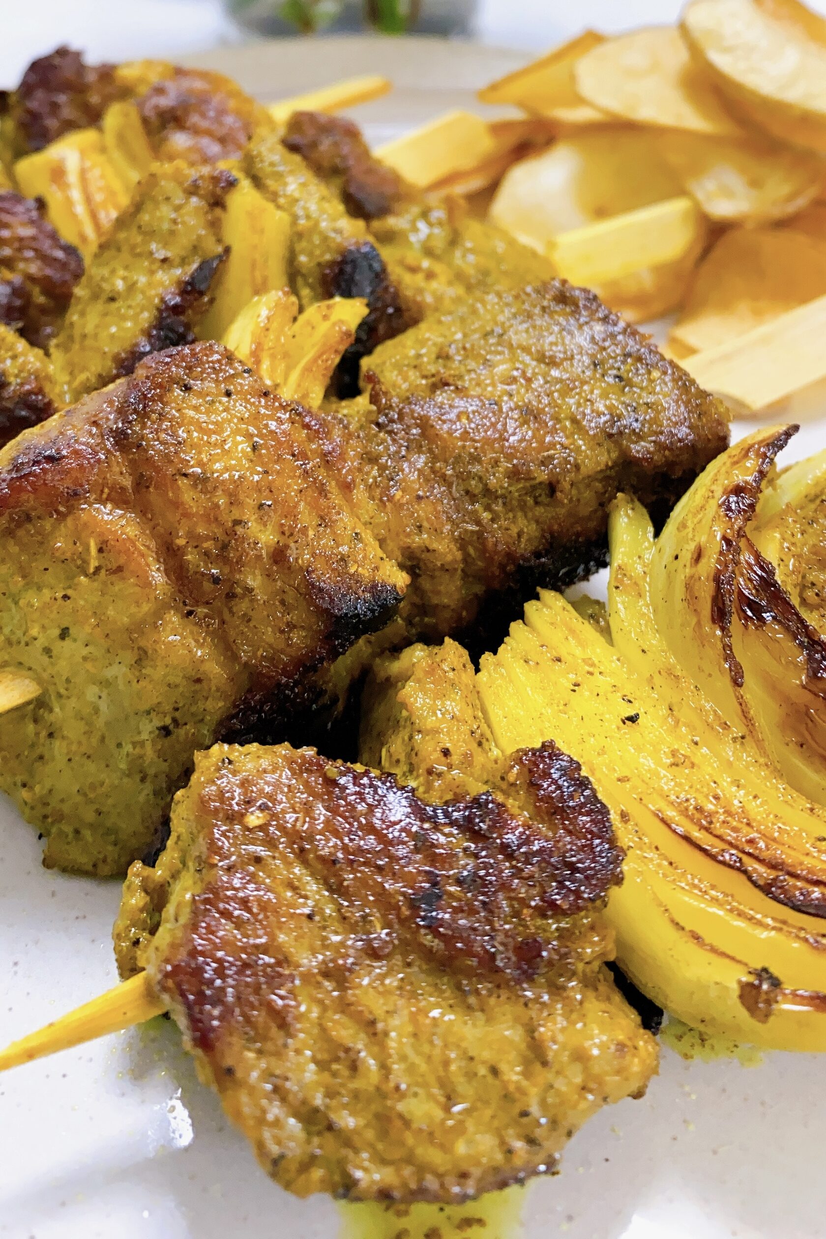 En esta receta utilizamos carne de cerdo jugosa, aunque también se pueden preparar con cordero o pollo. La combinación de especias recién molidas crea un adobo intenso y muy aromático que impregna la carne y le da ese sabor tan característico.