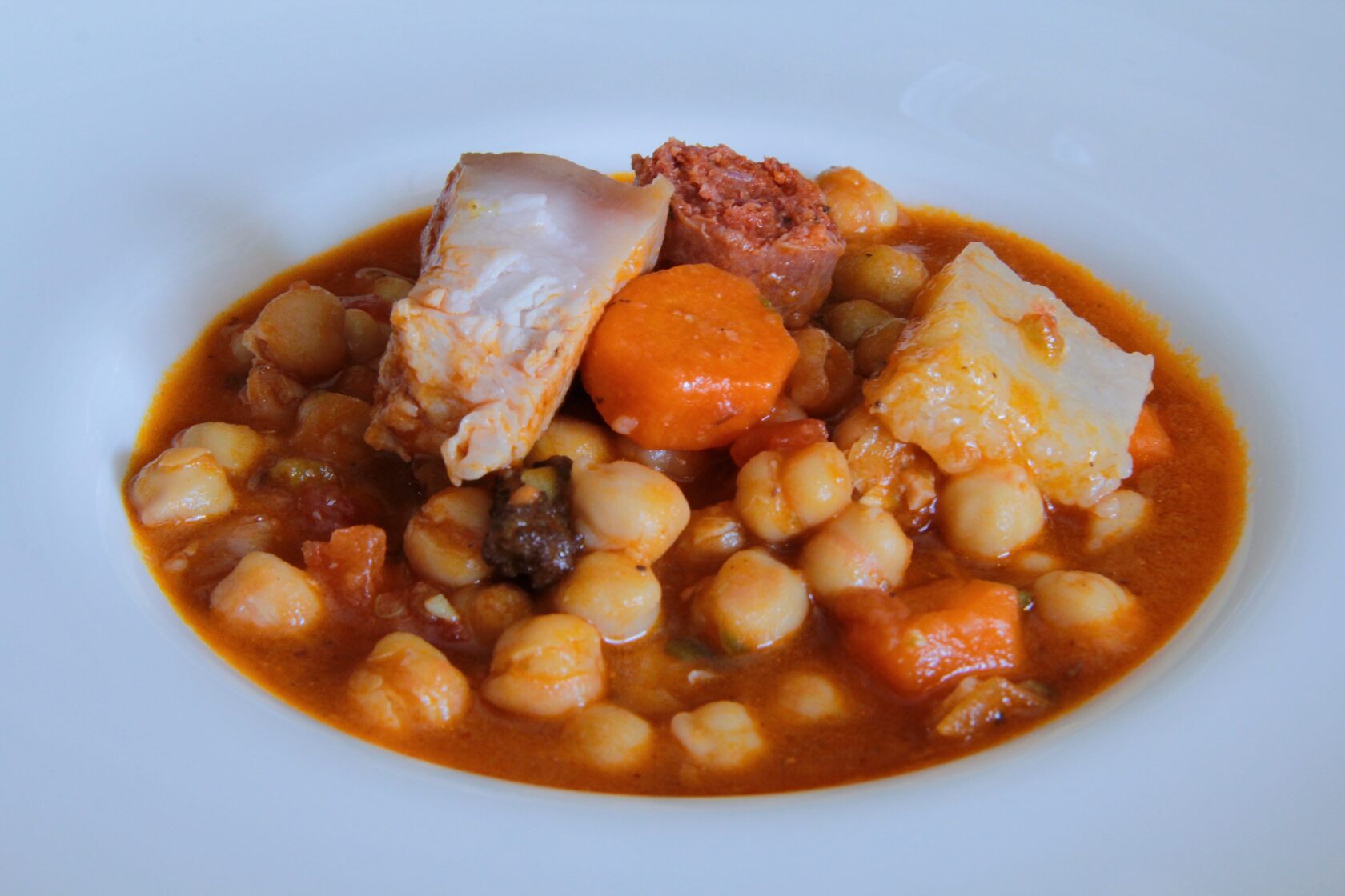 Es un guiso contundente y lleno de sabor donde los garbanzos se cocinan lentamente con verduras y carnes, dando lugar a un caldo espeso y aromático. La pringá, con sus distintos cortes de carne y embutidos, aporta toda la intensidad y hace de este potaje un plato completo y reconfortante.